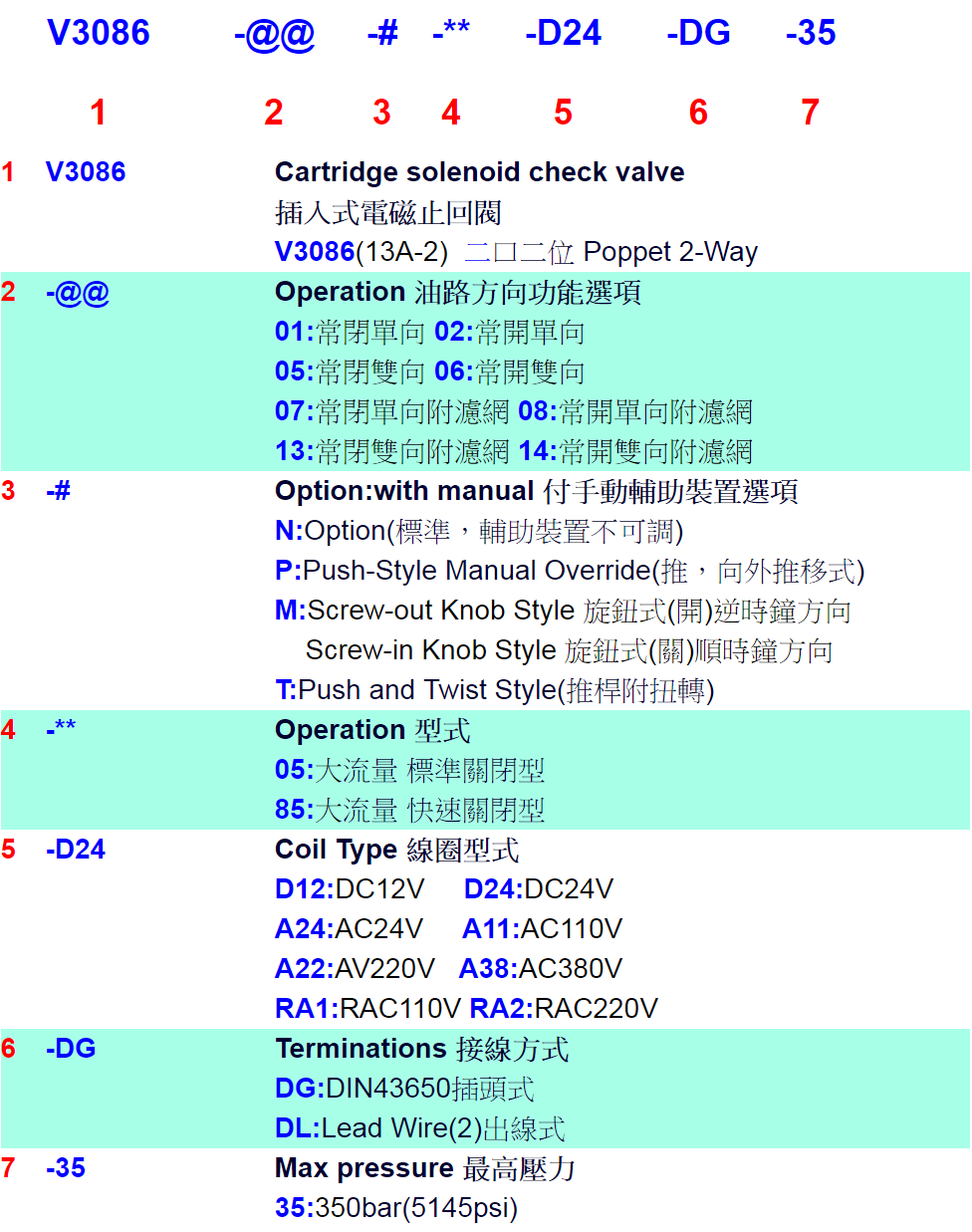 Product name:ON/OFF VALVE 350KG V3086-01-N-05-D24-DG-35 |